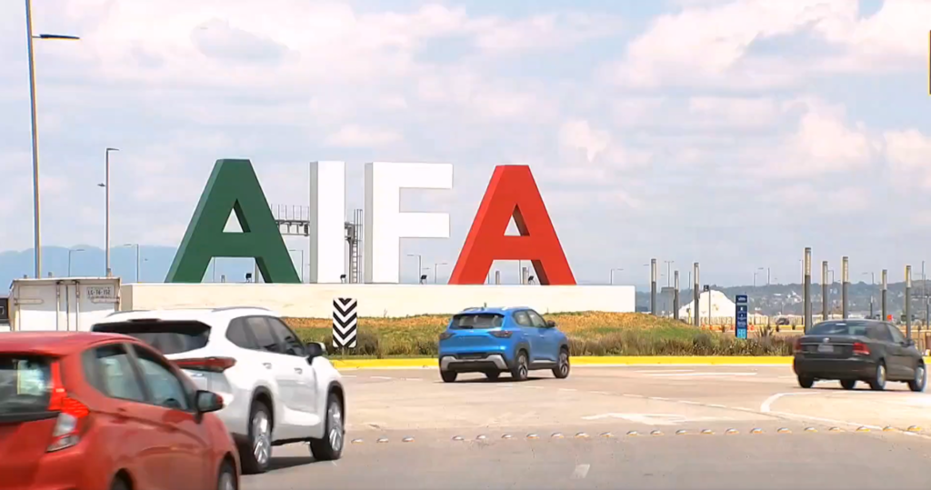 Acompañó el mensaje con un video que muestra la actividad del aeropuerto: pasajeros caminando con equipaje por las salas, familias transitando por los pasillos, carros en la zona de llegada y el icónico letrero del AIFA.
